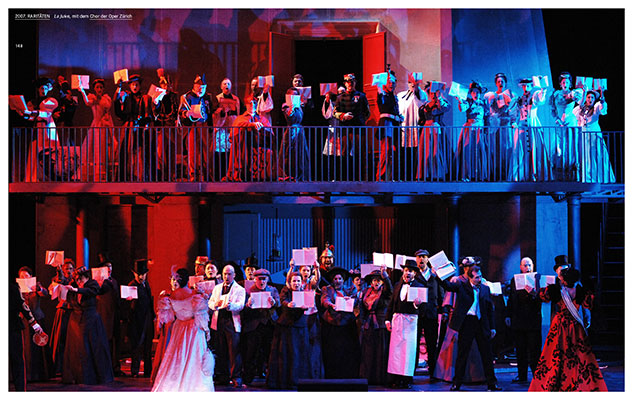 gedruckter Szenenfotos und Ansichten des Zürcher Opernhauses, ist