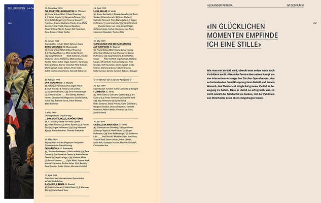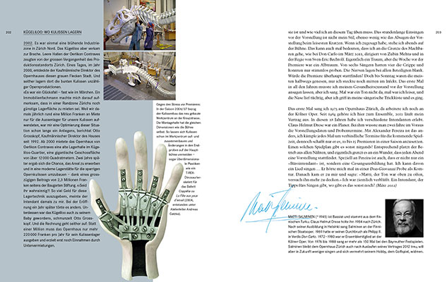 Reminiszenzen, Fakten und Zahlen zur Arbeit vor und hinter der Bühne zeigen eine Opernwelt, die der Zuschauer so sonst nicht zu sehen bekommt. Weite Bildstrecken zeigen grosse Momente – mit viel Emotion in Farbe und schwarz-weiss. Auch sind sämtliche Spielpläne inklusive Besetzungen im neuen Werk enthalten.