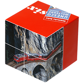 sixtet® – Rhätische BahnQuer durch die Schweiz mit der bekannten roten Bahn: Unterwegs auf der Rhb-UNESCO-Welterbe-Strecke gilt es, Zugkompositionen in die richtige Reihenfolge zu bringen, Viadukte zu bauen oder das Ende eines Tunnels zu finden. |